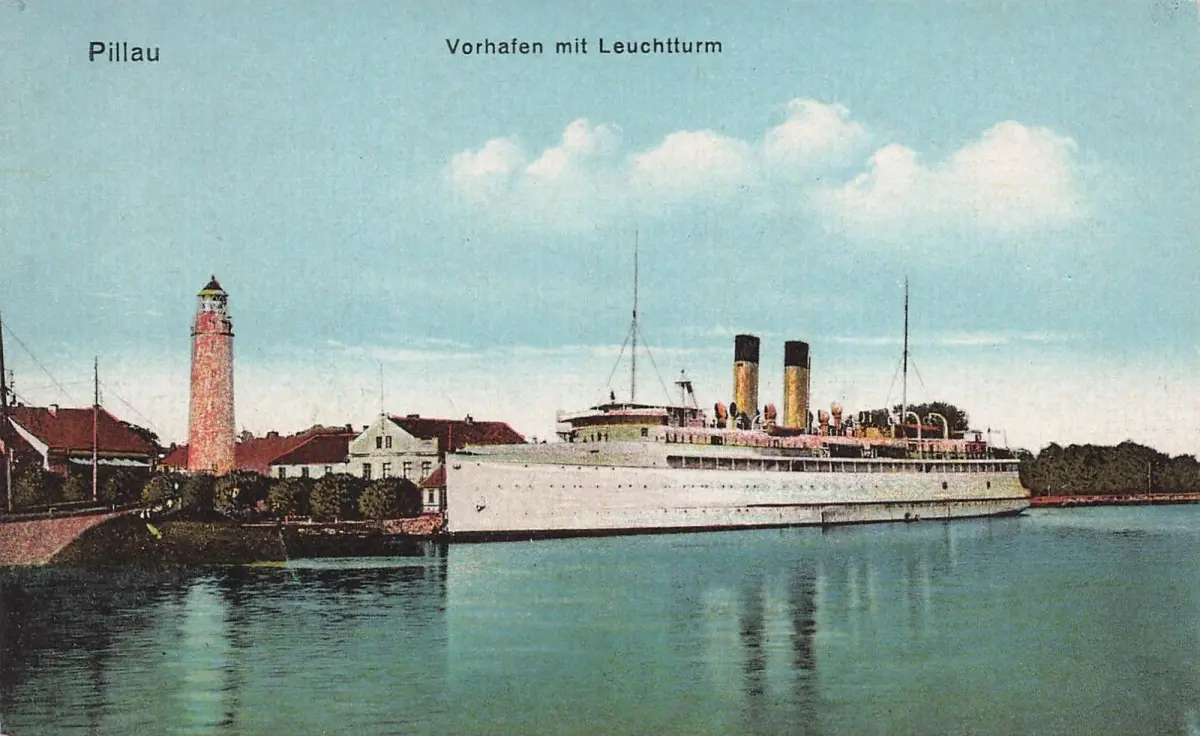 AK Pillau Vorhafen Leuchtturm Schiff Ostpreussen ungelaufen Postkarte