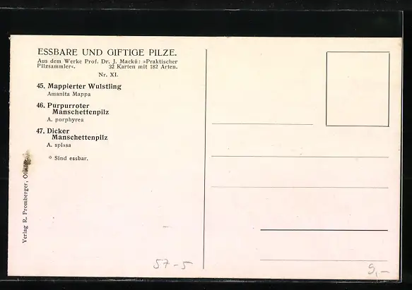 AK Pilze, Mappierter Wulstling, Purpurroter Manschettenpilz, Dicker Manschettenpilz