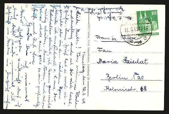alte Ansichtskarte, gelaufen 1949, guter Zustand