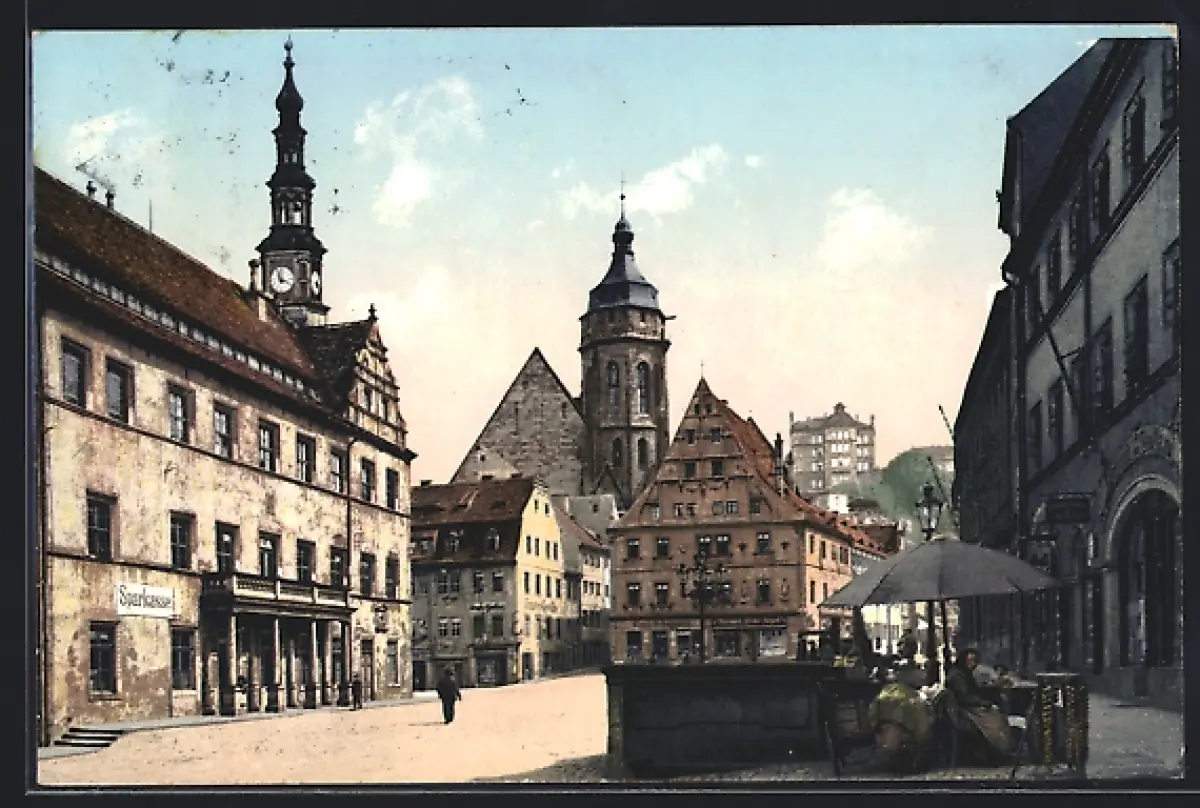 AK Pirna, Markt, Stadtkirche, Rathaus, Sparkasse