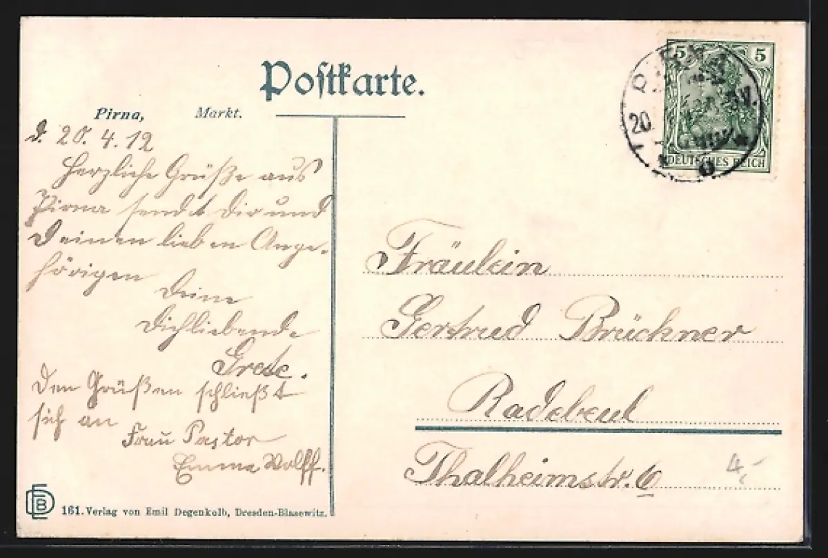 alte Ansichtskarte, gelaufen 1912, Stempelspur, guter Zustand