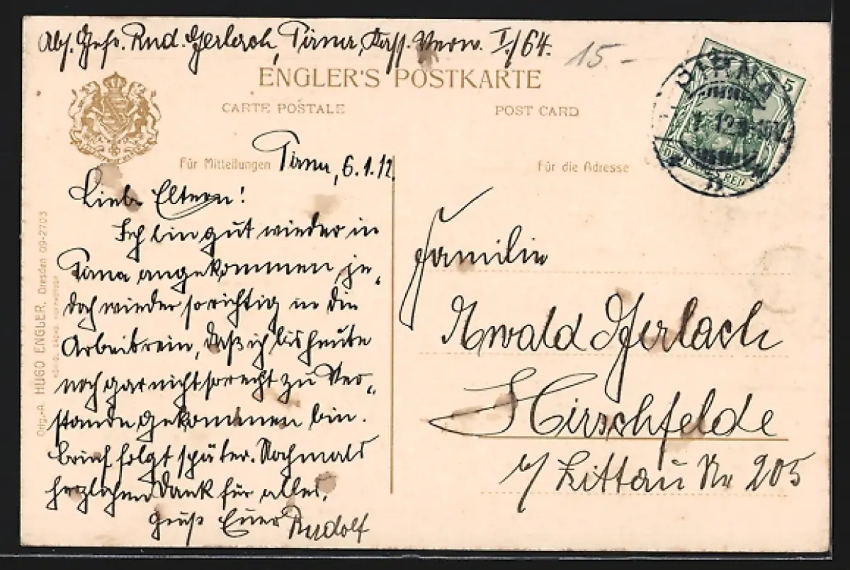 alte Ansichtskarte, gelaufen 1912, guter Zustand