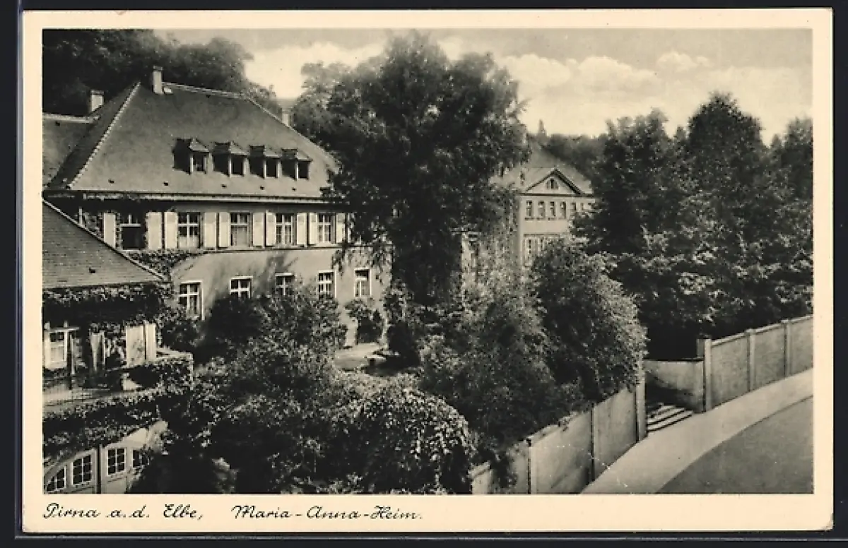 AK Pirna a. d. Elbe, Maria-Anna-Heim aus der Vogelschau