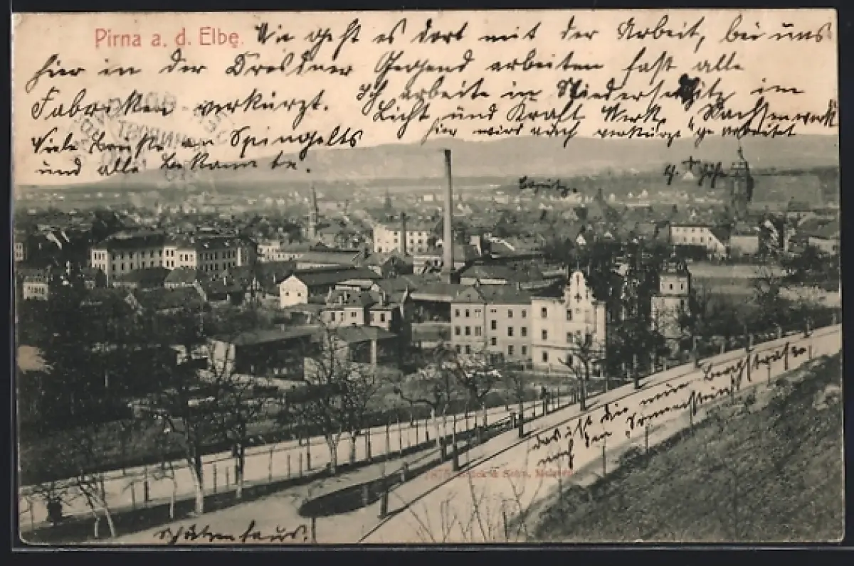 AK Pirna a. d. Elbe, Stadtansicht von einer Anhöhe aus