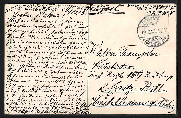 gelaufen 1915, Eckknicke li. unten u. re., guter Zustand
