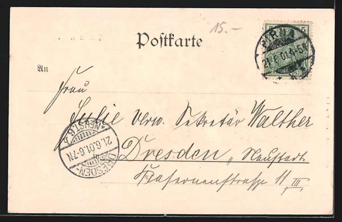 alte Ansichtskarte, gelaufen 1901, Eckknick li. unten, guter Zustand