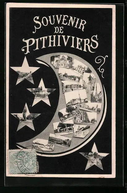 AK Pithiviers, Gebäudeansicht, Denkmal u. Ortspartie im Halbmond