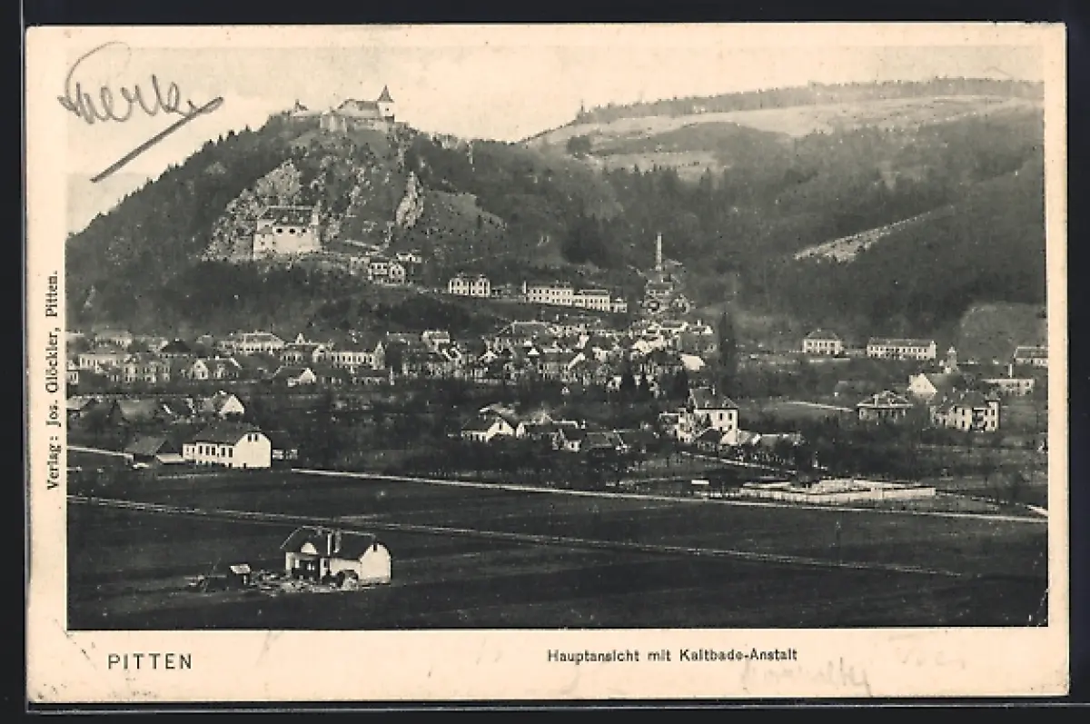 AK Pitten, Hauptansicht mit Kaltbade-Anstalt