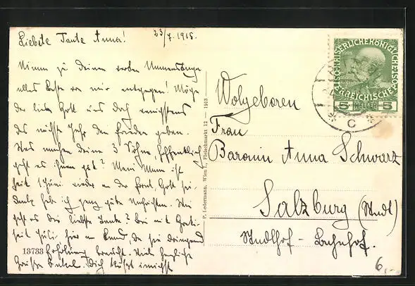 alte Ansichtskarte, gelaufen 1915, Stempelspur, guter Zustand