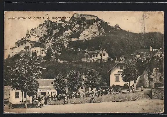 AK Pitten a. d. Aspangbahn, Ortsansicht mit Anwohnern