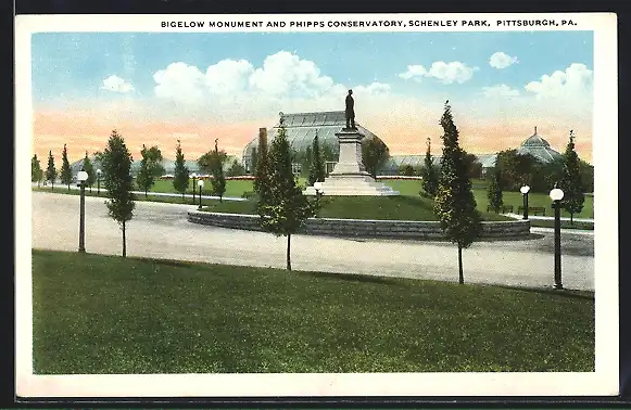 AK Pittsburgh, PA, Bigelow Monument and Phipps Conservatory, Schenley Park