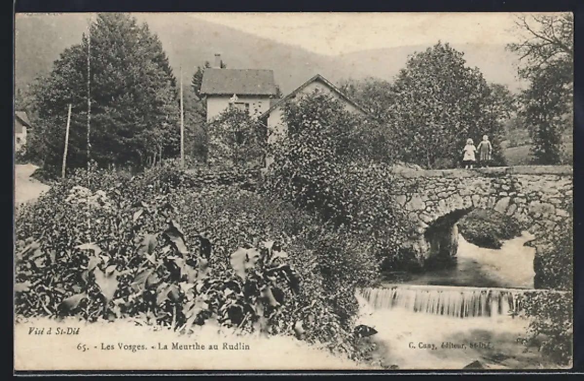 AK Plainfaing, La Meurthe au Rudlin avec pont en pierre et maisons environnantes