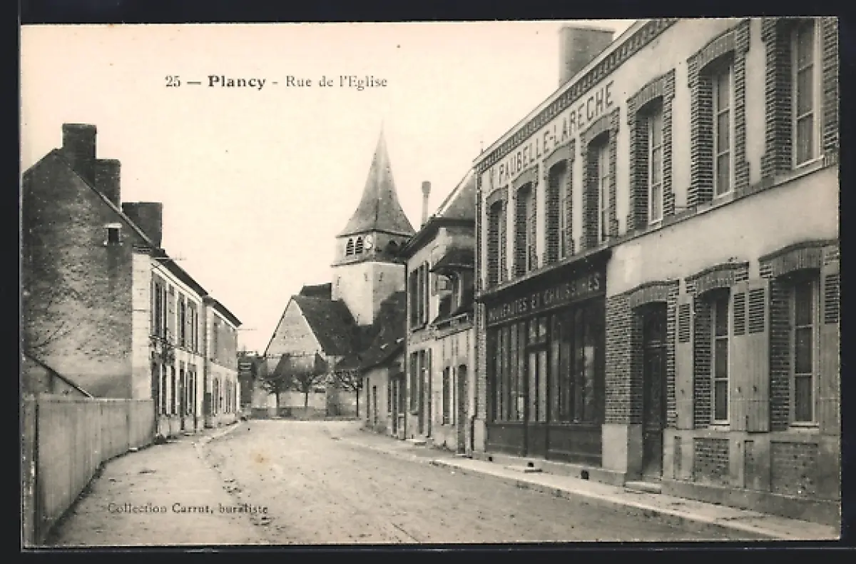 AK Plancy, Rue de l`Église avec vue sur l`église et bâtiments environnants