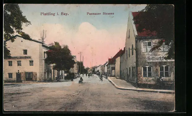 AK Plattling i. Bay., Passauer Strasse mit Geschäften