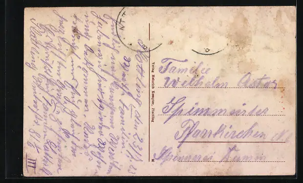 alte Ansichtskarte, gelaufen 1923, Briefmarke tw. entfernt, rückseitig Oberflächenschaden, minimaler Einriss li. mittig, guter Zustand