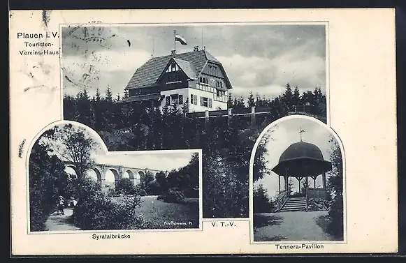 AK Plauen / Vogtland, Touristen-Vereins-Haus, Syratalbrücke