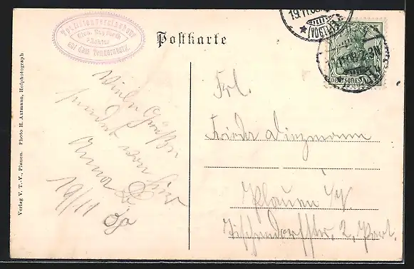 alte Ansichtskarte, gelaufen 1908, Stempelspur, guter Zustand