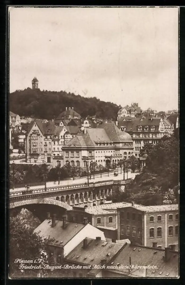 AK Plauen i. V., Friedrich-August-Brücke mit Blick nach dem Bärenstein