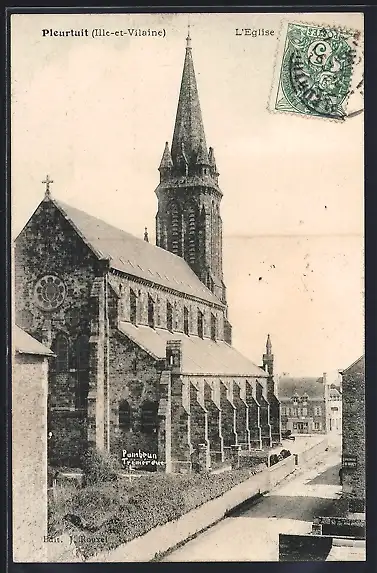 AK Pleurtuit, Vue de l`Église avec son clocher imposant