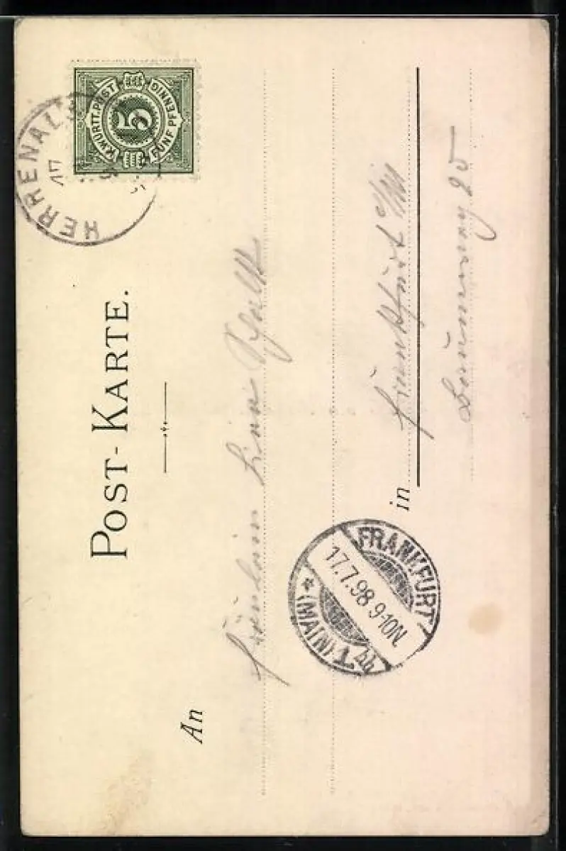 gelaufen 1898, Eckknick links unten, guter Zustand