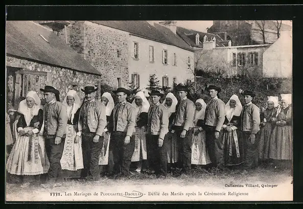 AK Plougastel-Daoulas, Les Mariages, Défilé des Mariés après la Céremonie Religieuse