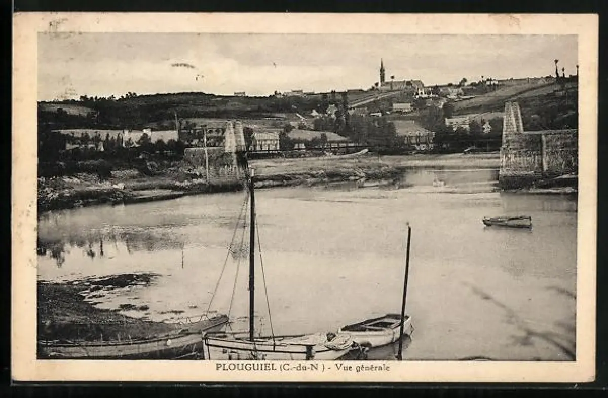 AK Plouguiel /C.-du-N., Vue générale du village et de la rivière avec bateaux