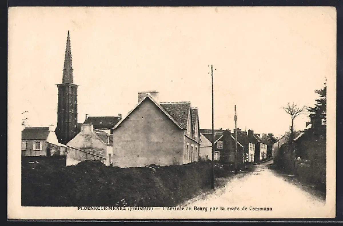 AK Plouneour-Menez /Finistère, L`arrivée au Bourg par la route de Commana