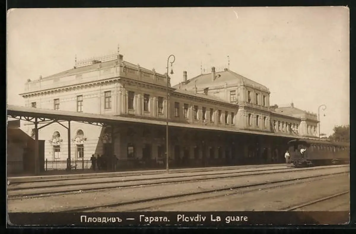 AK Plovdiv, la guare, Bahnhof von der Gleisseite