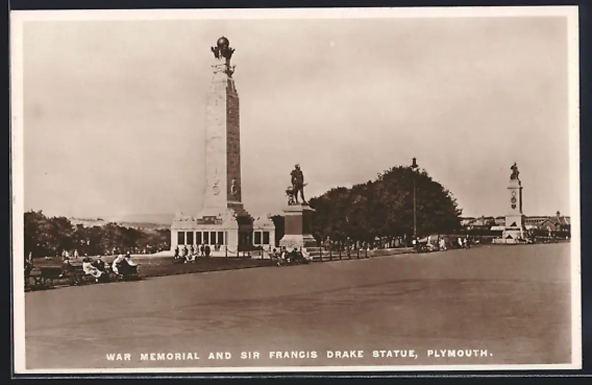 AK Plymouth, War Memorial and Sir Francis Drake Statue