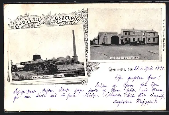 AK Pömmelte, Gasthof zur Eiche, Zeche Neue Hoffnung