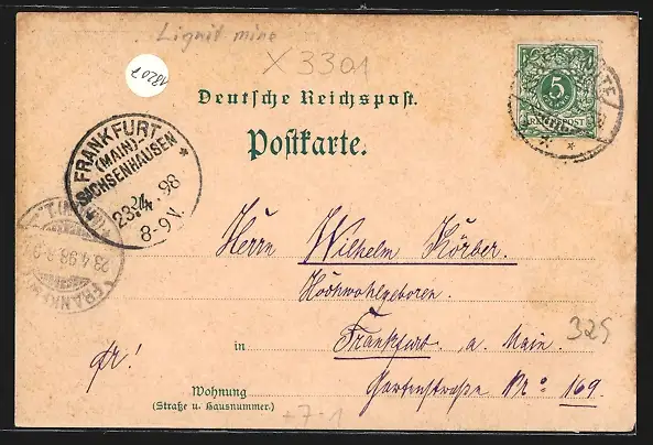 alte Ansichtskarte, gelaufen 1898, rückseitig Klebe- und Papierreste, Eckknick li. unten, Bugspur re. unten, guter Zustand