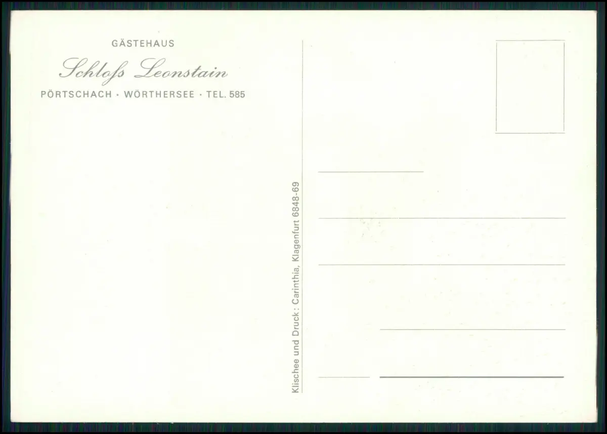 Rückseite: Mit Aufdruck Gästehaus Schloss Leonstain – Pörtschach Wörthersee – Tel. 585