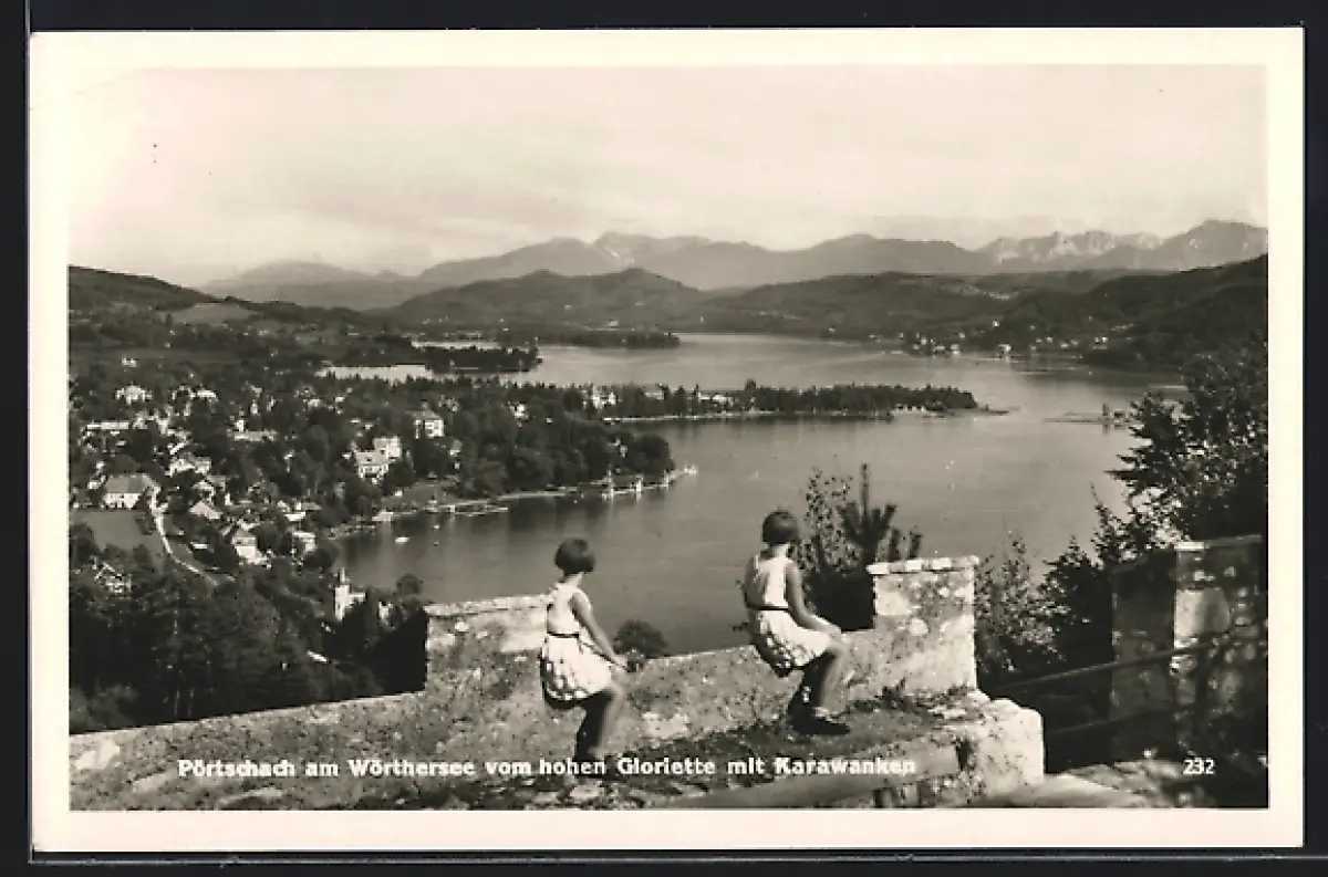 AK Pörtschach a. Wörthersee, Ort vom hohen Gloriette mit Karawanken, Kinder
