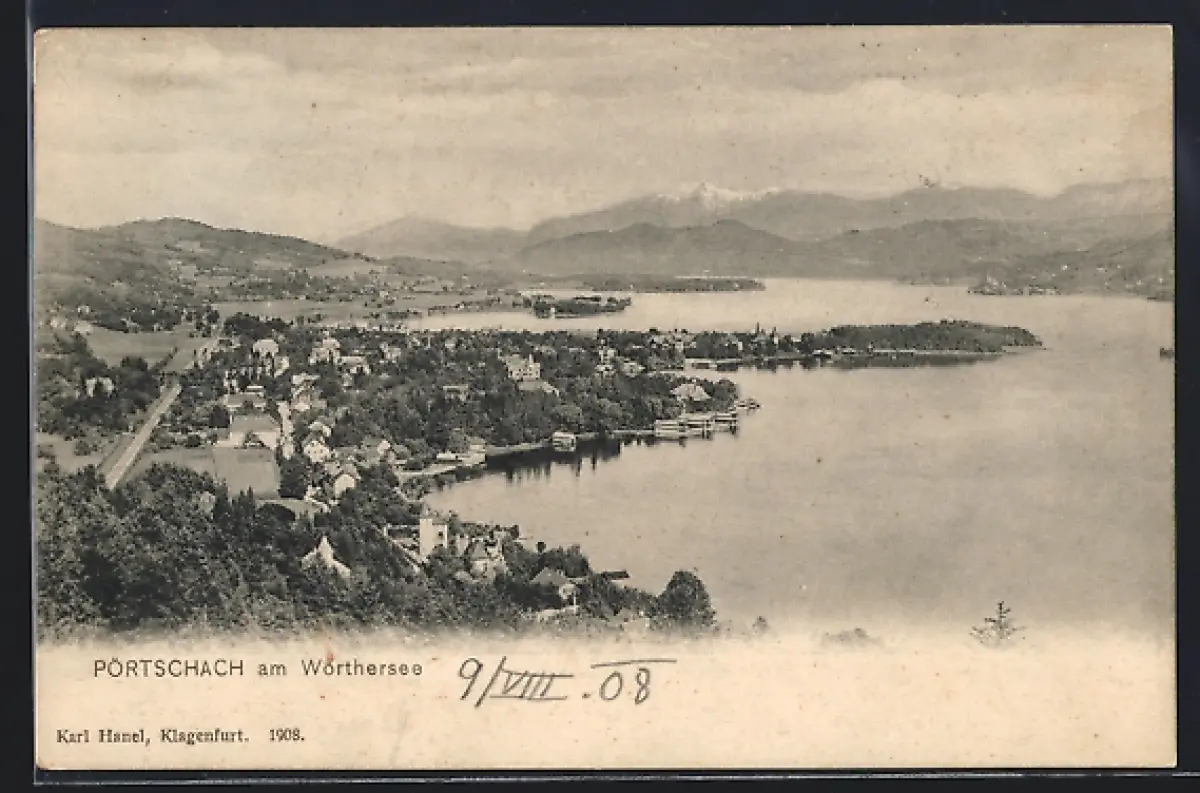 AK Pörtschach am Wörthersee, Teilansicht mit Bergen