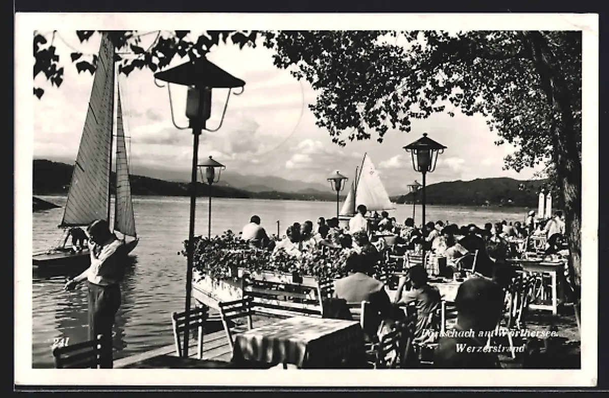 AK Pörtschach am Wörthersee, Werzerstrand mit Cafe