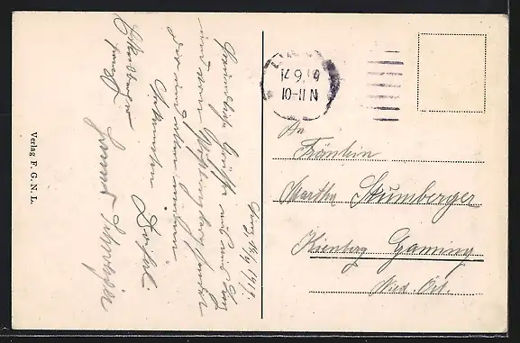 alte Ansichtskarte, gelaufen 1919, Briefmarke entfernt, Stempelspur, guter Zustand
