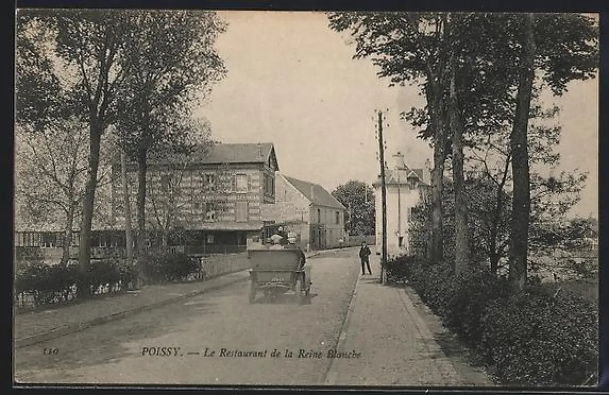 AK Poissy, Le Restaurant de la Reine Blanche et rue bordée d`arbres