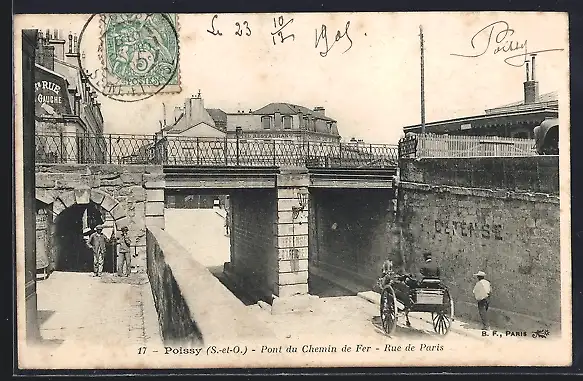AK Poissy, Pont du Chemin de Fer, Rue de Paris