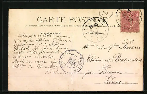 alte Ansichtskarte, gelaufen 1908, guter Zustand