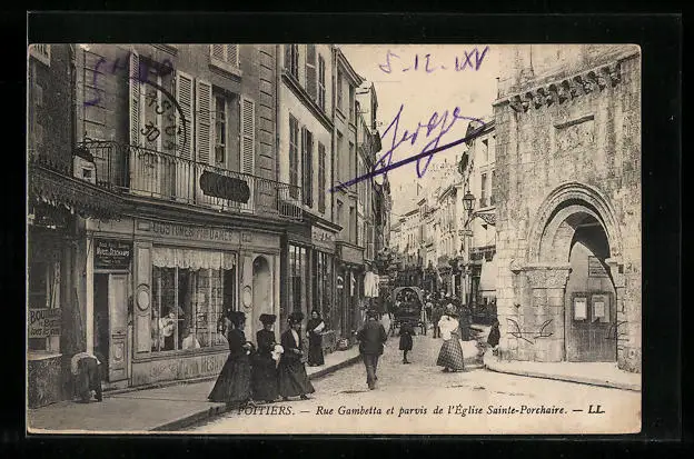 AK Poitiers, Rue Gambetta et parvis de l`Eglise Sainte-Porchaire