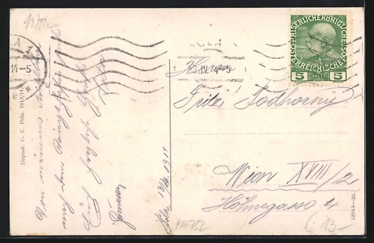 alte Ansichtskarte, gelaufen 1914, Stempelspur, guter Zustand