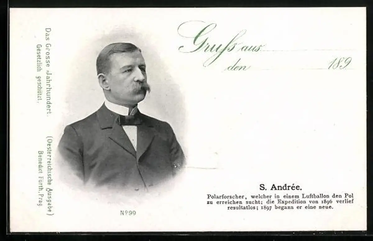 AK Polarforscher S. Andrée, welcher in einem Ballon den Pol zu erreichen suchte