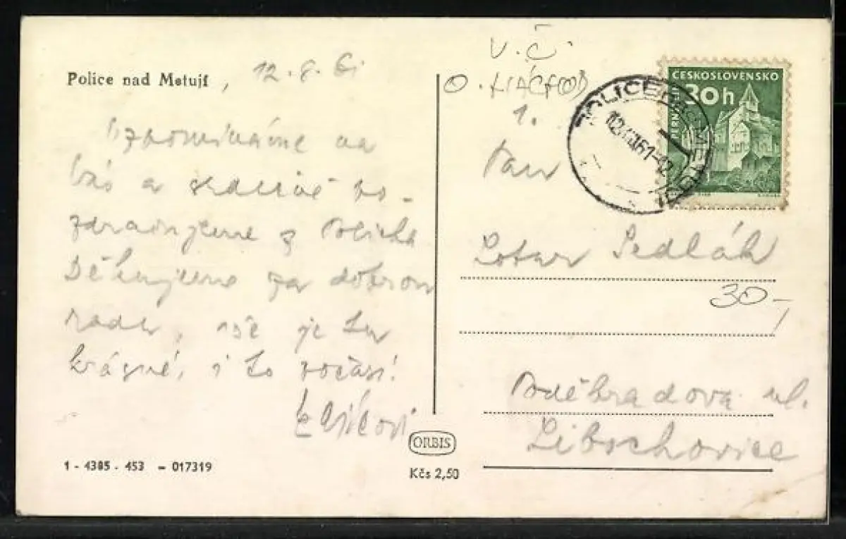 AK Police nad Metuji, Strassenpartie mit Denkmal