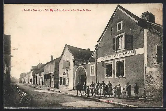 AK Polisy, La Grande Rue avec habitants devant le café de l`Union Francaise