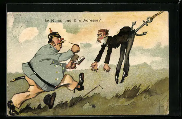 AK Polizist fragt Herr an Anker nach Name und Adresse