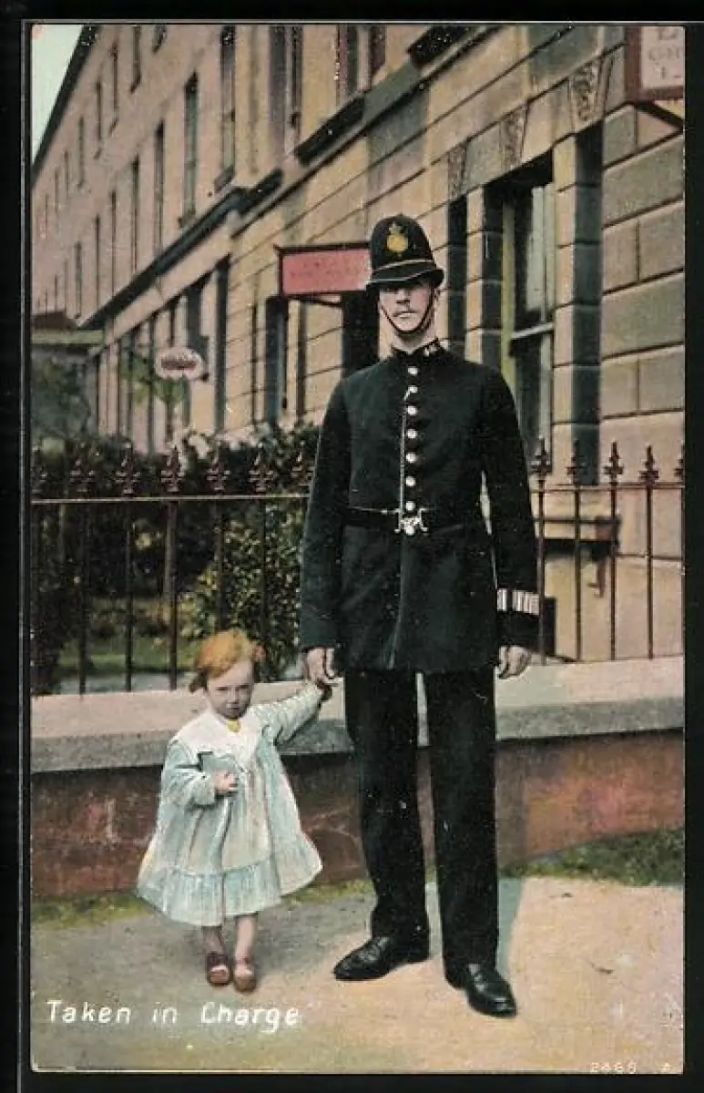 AK Polizist mit einem kleinen Kind, Taken in Charge