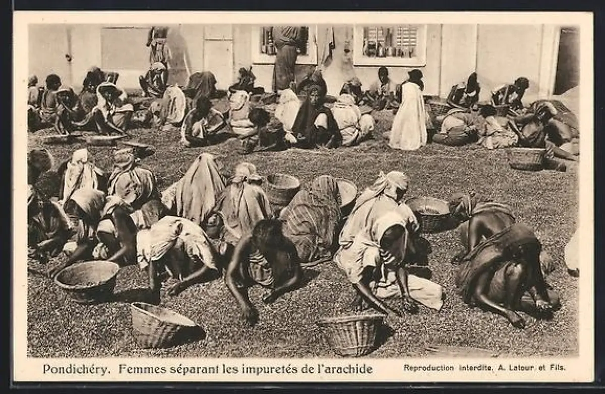 AK Pondichéry, Femmes séparant les impuretés de l`arachide