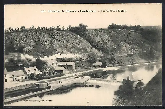 AK Pont-Réan, Vue générale du Boël avec chemin de fer et rivière