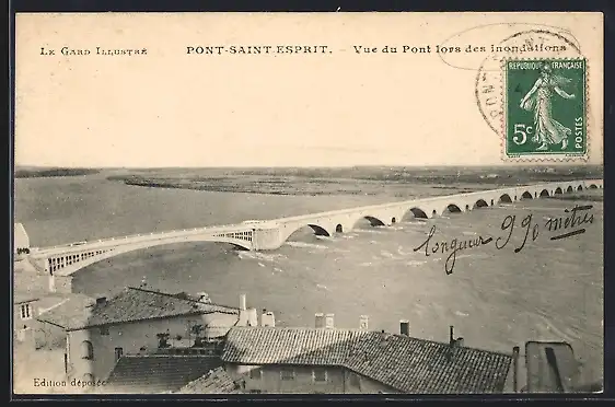 AK Pont-Saint-Esprit, Vue du Pont lors des inondations