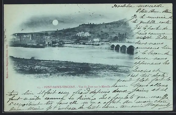 AK Pont-Saint-Vincent, Vue du Pont sur la Moselle